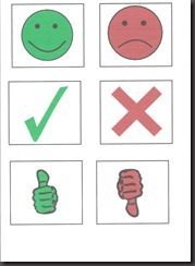 Μπορούμε να φτιάξουμε όσες θέλουμε ανάλογα με την τάξη μας. Αφού εξηγήσουμε τις κάρτες- σύμβολα βάζουμε τα παιδιά να καθίσουν σε 2 σειρές αντικριστά. Η μία σειρά κρατάει τις κάρτες- σύμβολα και η άλλη τις κάρτες-ενεργειών. Τα παιδιά που κρατάνε τις κάρτες ενεργειών τις γυρνάνε σταδιακά. Σε κάθε γύρισμα τα παιδιά με τις κάρτες σύμβολα αντιδράνε ανάλογα και χωρίς να μιλήσουν. π.χ σε μια καλή ενέργεια σηκώνουν το χέρι τους κρατώντας την κάρτα τους ψηλά μόνο τα παιδιά που έχουν “θετική” κάρτα-σύμβολο.