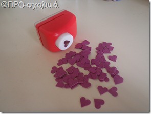 Για τις στάμπες-καρδιές αγόρασα σφουγγαράκια (10τμχ=1ευρώ) και τα έκοψα σε σχήμα καρδιάς, μία για τον καθένα τους, για να μην γίνει τη Δευτέρα σφαγή;).