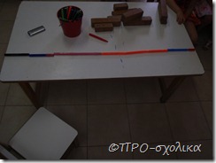- μετράμε διάφορα παιδιά με τουβλάκια και καταγράφουμε τις μετρήσεις μας για να συγκρίνουμε τα μήκη.