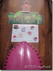 Στο μεταξύ έχουμε ετοιμάσει και τοποθετήσει στον πίνακά μας τα στοιχεία της ιστορίας. Δεν χρειάζετε να τα φτιάξετε όπως τα δικά μου. Μπορεί να είναι σε μέγεθος Α4 ή απλά να τα ζωγραφίσετε σε χαρτιά.