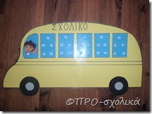 Αφού διαβάσετε με τα παιδιά την ιστορία τους δίνετε μια μικρή φωτογραφία τους και τα ρωτάτε αν θέλουν να πάνε και εκείνα στο Νηπιαγωγείο της Ντόρας. Φωνάζουμε τον Ντιέγκο που οδηγάει το σχολικό και το κάθε παιδί επιβιβάζετε (κολλάει τη φωτογραφία του όπου θέλει ) στο λεοφωρείο μας.